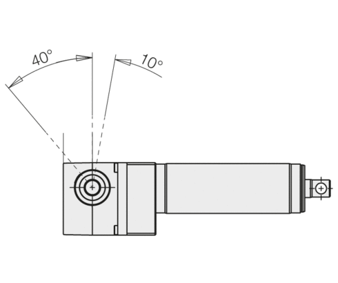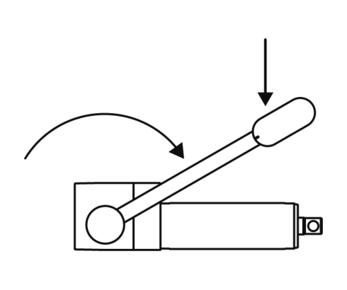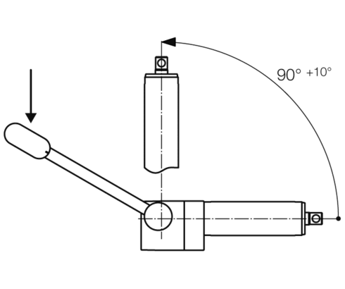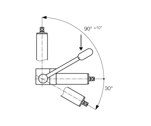 The plunger rod is extended by reversible rotation of approx. 40° by an operating lever at the operating shaft. The recommended lever length is approx. 300 mm.