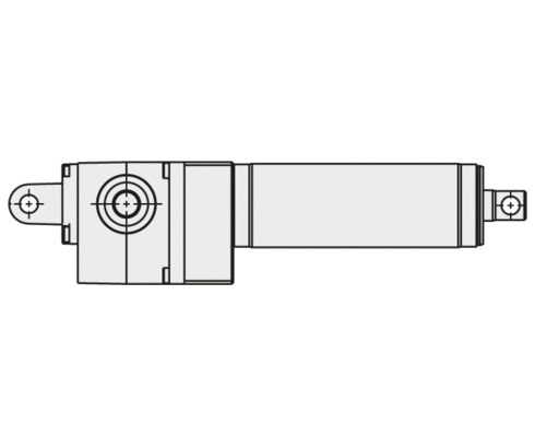The linear actuators RH 1250 have 1 location hole Ø 12.1 mm in the plunger and 2 centring pivots Ø 38 mm for the connection of user's constructions.